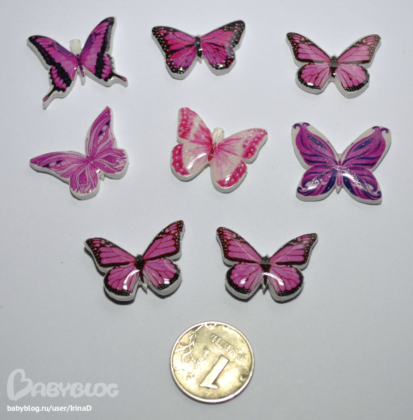 Бабочки. Две нижние - двусторонние. Остальные с обратной стороны - белые.