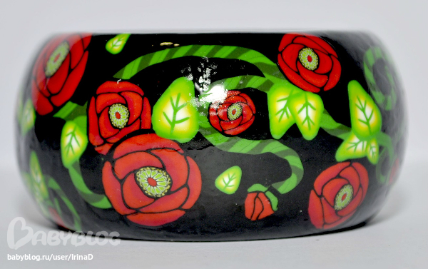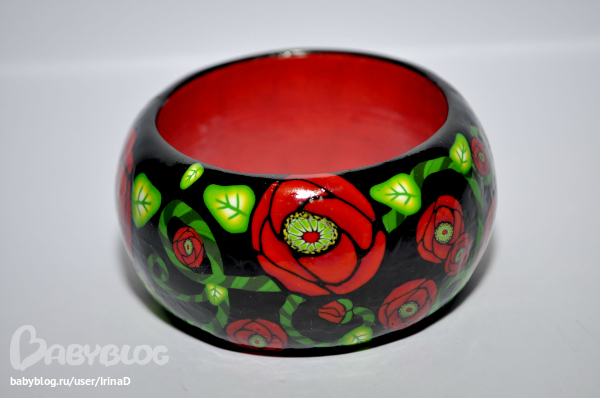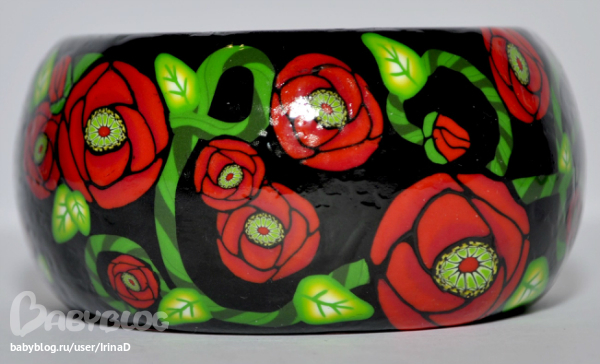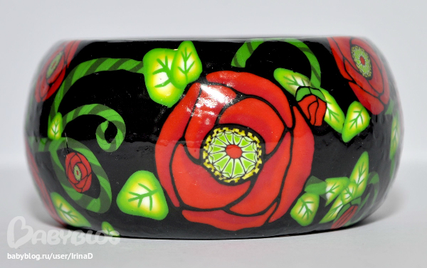 Браслет из красных маков на деревянной основе