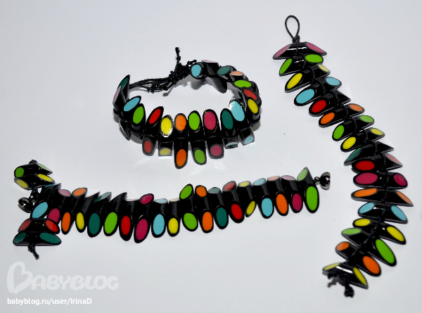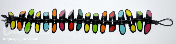 Очень давно сделала эти замечательные цветные штучки и собрала два браслета. Один браслет забрали, один остался. И осталось много-много бусинок. Наконец-то решила дособирать браслеты, но еще не все собрала.