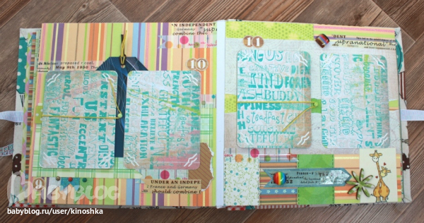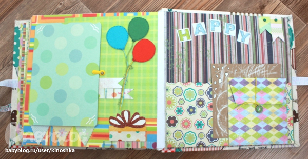 Альбом размером 21*21. 6 разворотов, 12 страниц. В переплёте. Обложка из американского хлопка, проложена синтепоном - мягкаааая!!! Альбом вмещает 30 фото размером 10*15 и 7,5*10, графики роста и веса, табличку на первые зубки, тег для отпечатка ручки и ножки, конверт для первого локона или др. памятных вещичек и карман для невместившихся фото.
