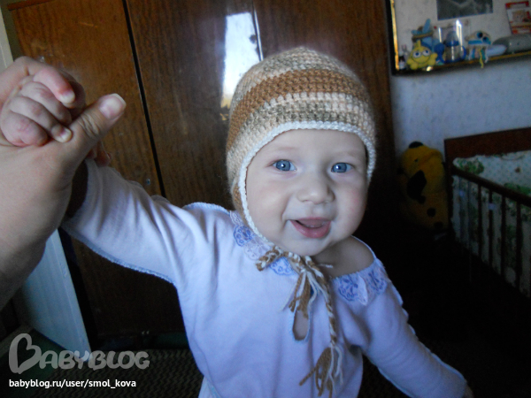можно мишку связать и прилепить, а можно так оставить, красивая шапочка!