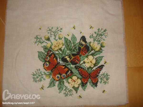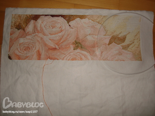 Вышиваю по листам, в схеме четыре листа, вышила два. получается по квадратам разными нитками)))