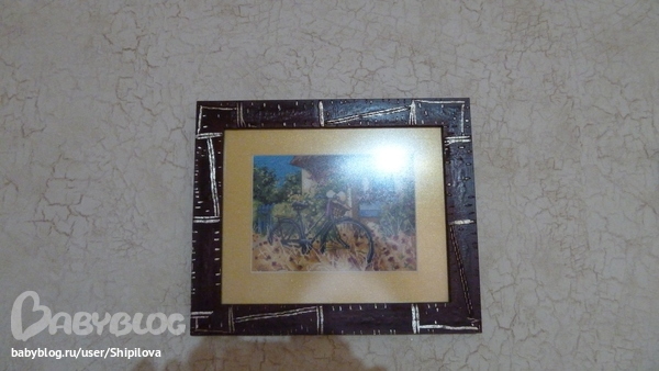 о вот только в спальне сделали ремонт и сегодня я сфотала картину (вернее фотала девчушку свою, которая на кровати развалилась но и заодно...)... муж уже клеит на супермегагипер двухсторонний скотч дабы не дырвить стены!!!