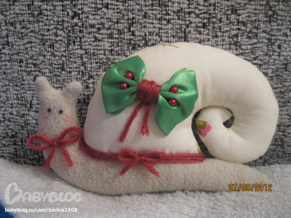 Шили мы ее вместе с дочкой из ткани которая была в наличии. ))) Не успела наша улиточка появится, как доча сразу ее забрала к своим игрушкам )))))