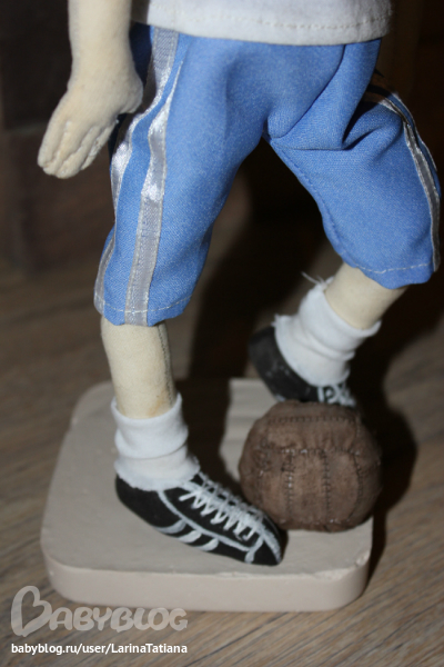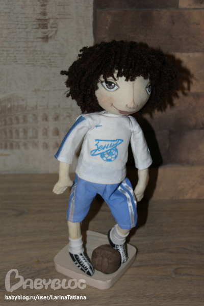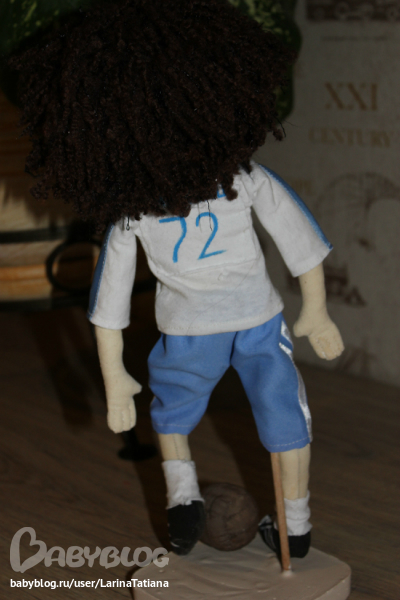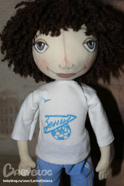 Всем привет! Я его все-таки сделала. Даже не так... Родила в творческих муках. Сколько раз переделывала, но успела в срок. 1 октября его подарят на юбилей. Моего "сыночка", мальчика-футболиста.... Наверное, нужно бы его назвать Олежкой, как зовут его будущего хозяина, но лучше уж пусть именинник сам придумает имечко своему подопечному. Очень хочется, чтобы они понравились друг другу. Это моя вторая кукла-тыковка, я ее полностью делала сама, без посторонней помощи и советов окружающих. Поэтому такая вот она вымученная получилась. И глаза груууустные-грустные.....