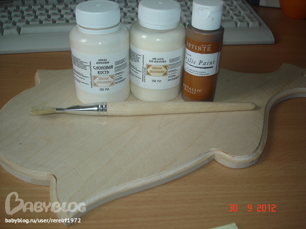 вчера на выставке купила доску, салфетки, ЛАК (КЛЕЙ) ДЛЯ ДЕКУПАЖА,КРАСКУ АКРИЛОВУЮ- все это от производителя "ШКОЛА ДЕКУПАЖА."