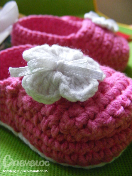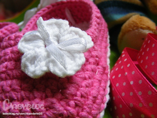 Супер! Я вдохновилась вашими пинеточками и тоже начала вязать пинетку, а в итоге получился носочек с отворотом) теперь осталось второй такой же связать))