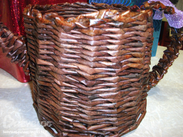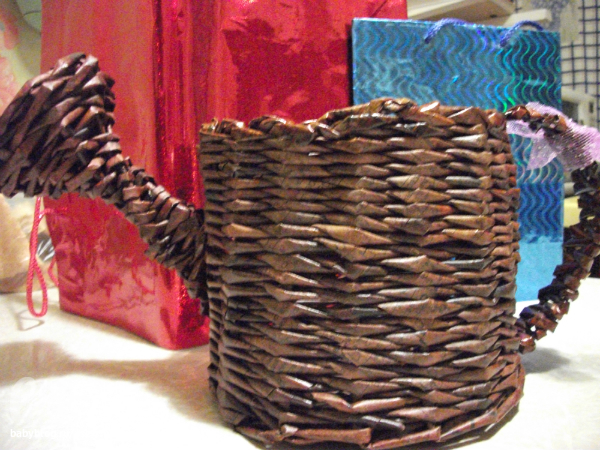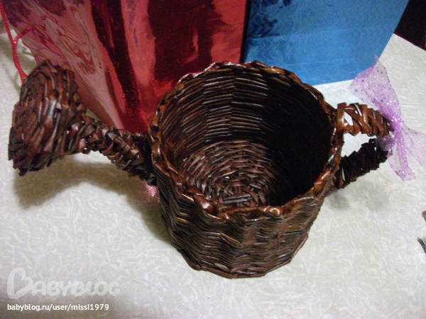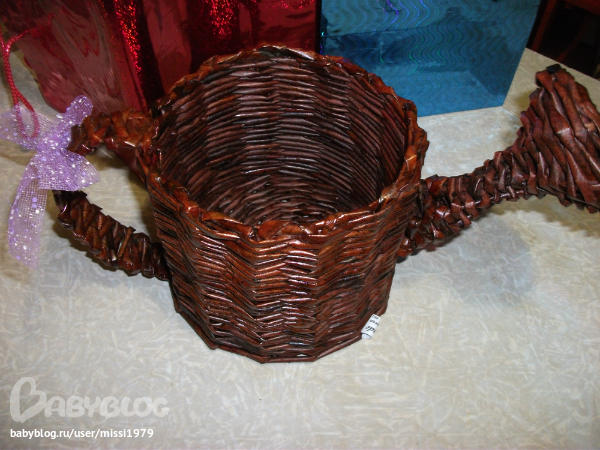 Изделия из бумаги, папье-маше, квиллинг.Вот такая лейка из газетных трубочек у меня получилась,на подарок учительнице,ей очень понравилось!
