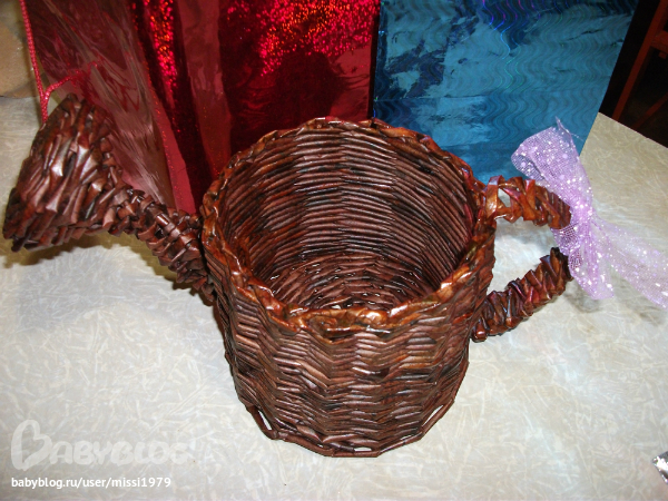 Вот такая лейка из газетных трубочек у меня получилась,на подарок учительнице,ей очень понравилось!