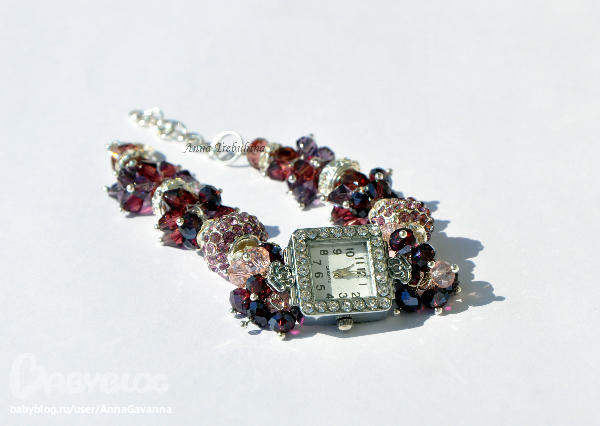 2. Часы кварцевые на батарейке. Украшены стразами. Браслет изготовлен с использованием бусин Пандора, хрустальных и стеклянных бусин. Длина браслета 20см, удлиняется цепочкой на 3см(по вашему желанию можно сделать любого размера). Стоимость 1100р. Правила покупки и доставки читайте в моём магазинчике в разделе .