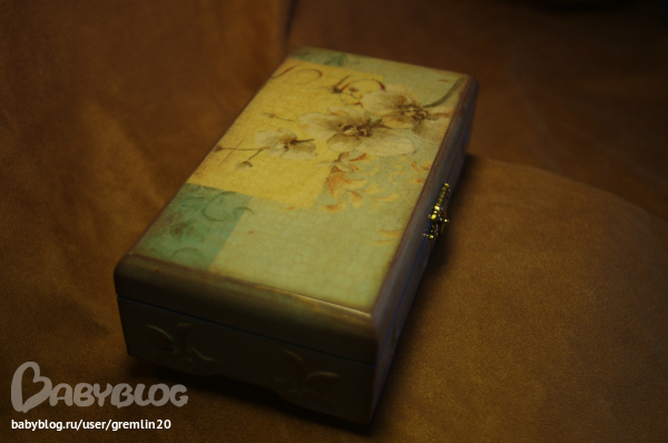 Да, Оль, я тоже на это обратила внимание. Анна, стул конечно дааа - не у каждоготерпения хватит. А шкатулка какая нежня - очень люблю в таком стиле!