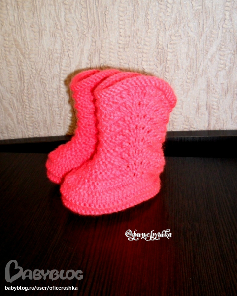 спицами вяжу редко, но сапожки сильно понравились! акрил в 2 ниточки, теплые.