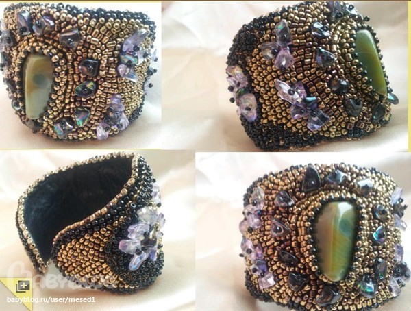 Ну все вышито на коже (можно на плотной ткани, есть еще псециальный стабилизатор для вышивания), после, чтоб форму браслета придать, все клеится на металлиическую или пластиковую основу (у меня пластик), с внутренней стороны клеится кожа.