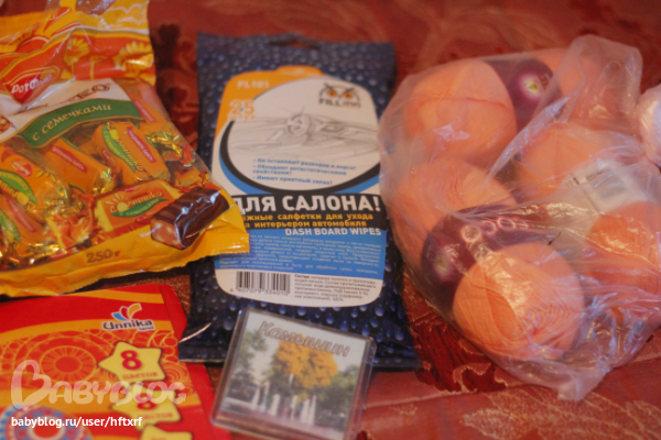 Идаже папке нашему свезло))) конфеты забрал, и салфетки для салона.Магнитик нашел свое место на холодильнике, ниточки уже ждут своего часа)