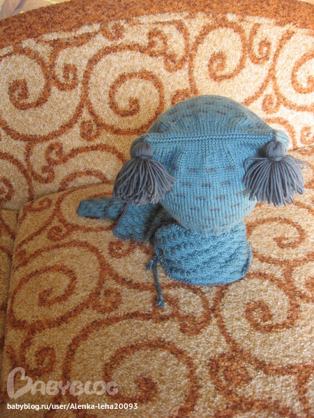 Да, там убавления. Я на глаз убавляла, когда осталось немного до завершения работы, на лицевой стороне: 5 петель провязывала, 2 вместе и так до конца ряда, изнаночный ряд просто изнаночными петлями, затем опять на лицевой стороне: 5 провязывала, 2 вместе и так до конца ряда. Ну и потом 5 рядов по рисунку и все - петли закрыла.