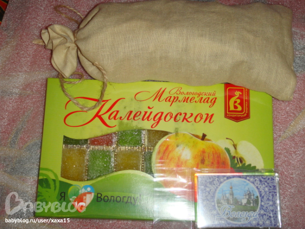 Вкусный мармелад, магнитик Вологда, и таинственный мешочек для нас с мужем:)))