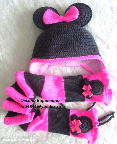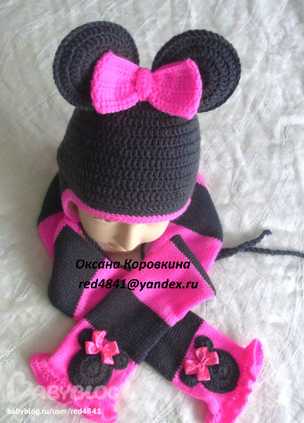 бантик просто полоска из 45 ст.с.н и рядов примерно 8)))потом стянула маленькой полосочкой...шарфик-нет))это машинная вязка