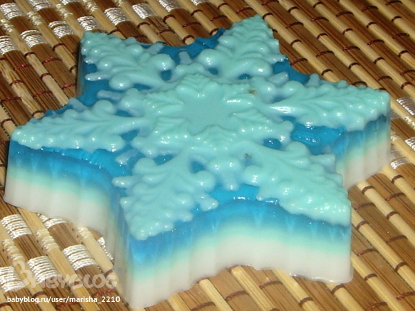 С картинками обалденные!!! А про снежинку круптным планом - я даже не сразу поняла, что это, думала, брусочком. Очень красиво получилось, и цвета так здорово переходят. У вас в середине тот же цвет, что и сверху, или это сочетание голубого с белым дало такой эффект?
