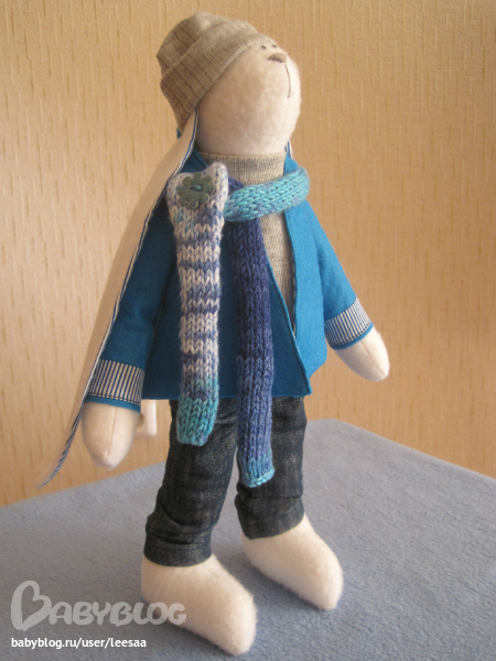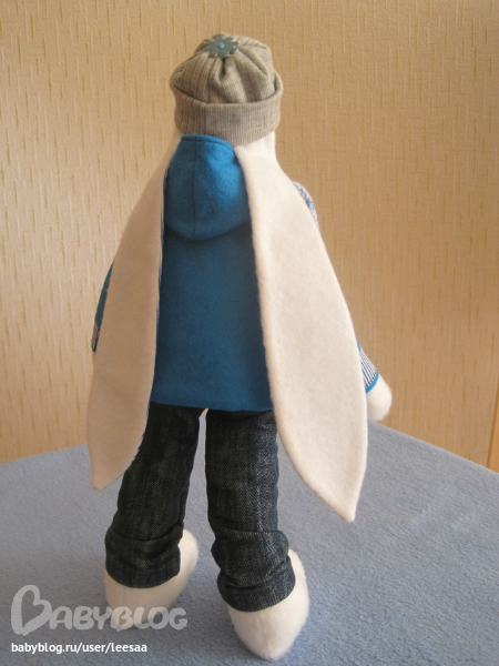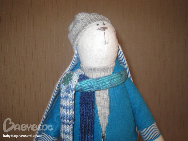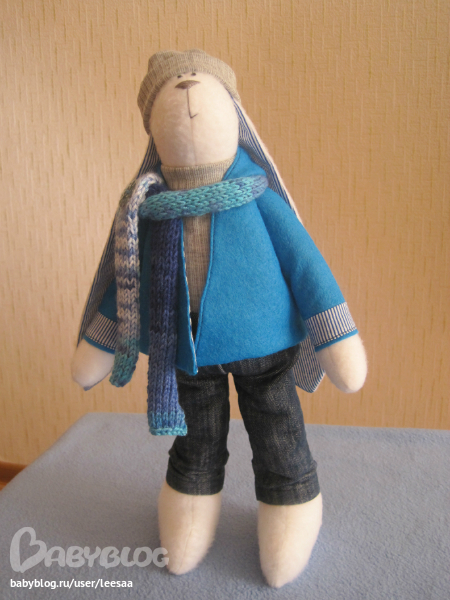 Ой, Лейсян, какой симпатичный зайка! Одежда просто мастерски сшита. Не поверила бы, что это только второй опыт. Уже не стыдно продавать :)