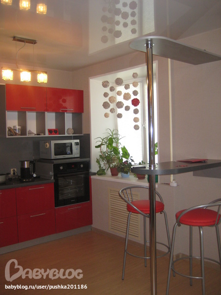 кухня -прелесть! У меня тоже красная, только оч. маленькая и поэтому смотрится совсем не так...