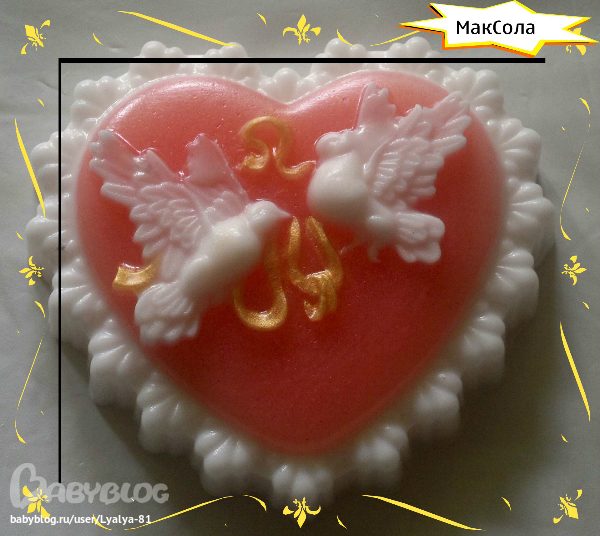 Голубки. Очень понравилась форма, может пригодится))) Мыльная основа Англия, диоксид титана, мика, масло виноградной косточки, отдушка жасмин.