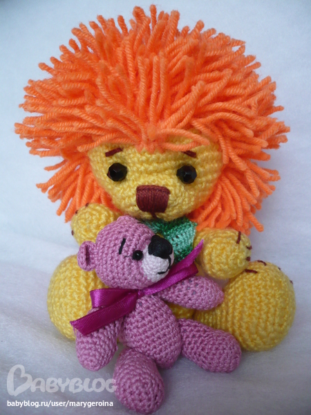 Захотела связать львёнка для друга, который лев по гороскопу, перелопатила весь интернет в поисках нужного описания, так как очень хотела милую мордашку)) Сначала мне показалось всё суперсложным, описание не подробным, львёнок никак не хотел получаться... Но глаза боятся, а руки делают, как говорится, так что выношу на ваш суд!))) Правда я в него уже влюбилась, даже жалко расставаться будет...сделано с любовью, надеюсь друг оценит.