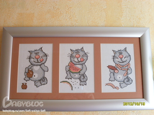 это панна, схемы светланы прокопец. всего их четыре котика. у меня готов только с колбасками, не оформлен.