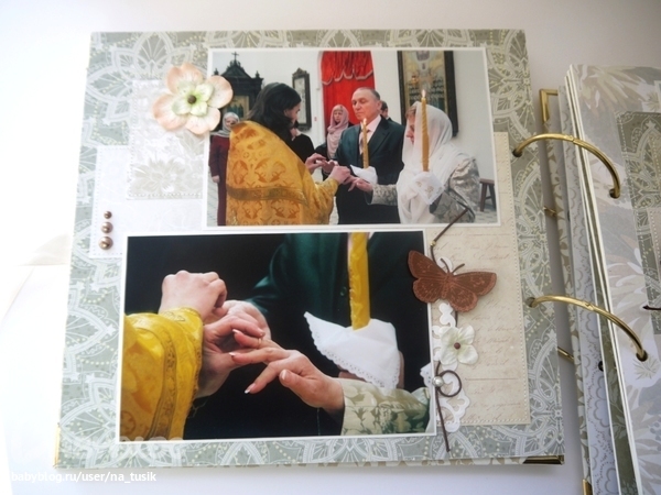СкрапбукингПопросила одна женщина в подарок свой сестре сделать альбом с фотографиями их церемонии венчания.Первый раз я делала альбом сразу с готовыми фото, да и пара, как видите, уже в солидном возрасте...с украшениями старалась не переборщить, очень переживала за результат, но как сказала заказчица, ее сестре с мужем все очень-очень понравилось.
