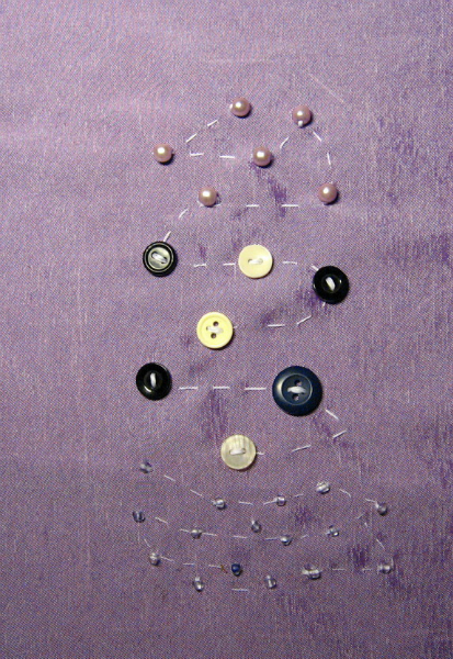 Использованы материалы: бусины, бисер, атласные и репсовые ленты, пуговицы, контактная лента, шнуры. Ткани: флок, фетр; плательный, мебельный и шторный габардины, бязь, тафта, органза, тик, шерстяная ткань с крупным переплетением, вязаное полотно, двунитка и двунитка с напылением, трикотаж, замша, в буквах на заглавной странице использован кож.зам сиреневого цвета.