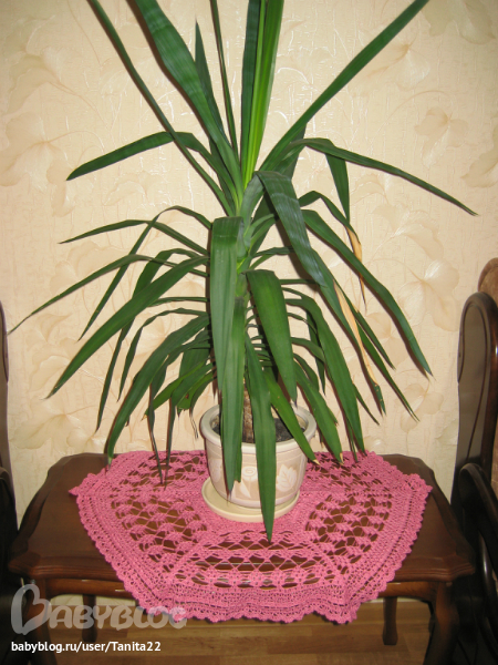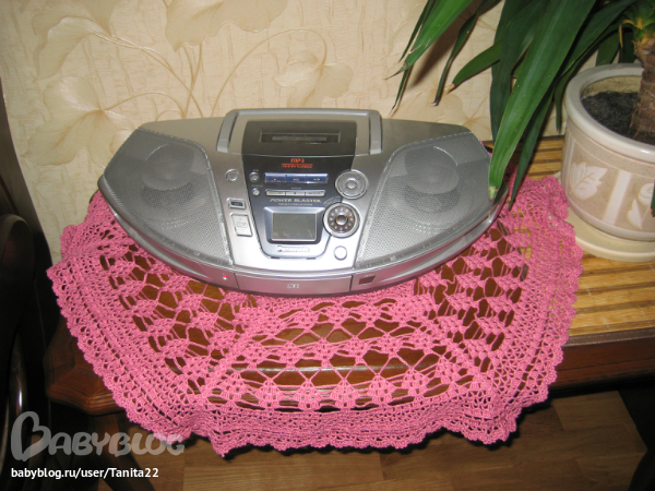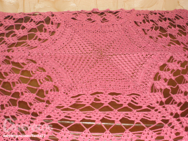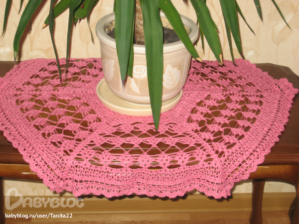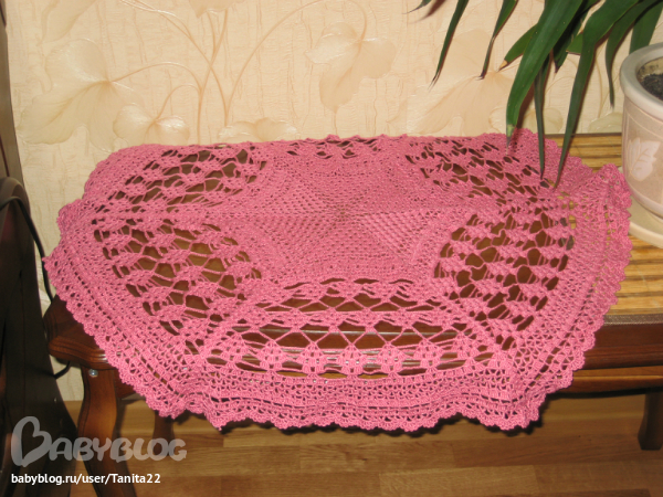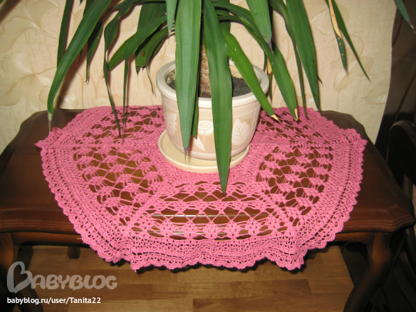 Залежался у меня один недовяз... Лет пять назад вязала, не хватило ниток на последние 2 ряда, так и остался лежать. Недавно наткнулась на это чудо, сходила в магазин, нашла ниточки и довязала, правда из двух рядов я сделала по-своему три. Но думаю от этого салфетка даже выиграла. И вот он мой шедевр!!!