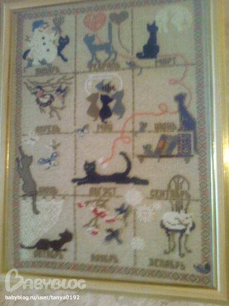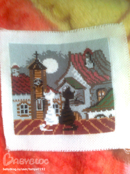молодец,а я только кошки-лето вышила,шерстью сложнее!но они такие красивые теплые!