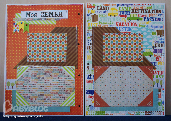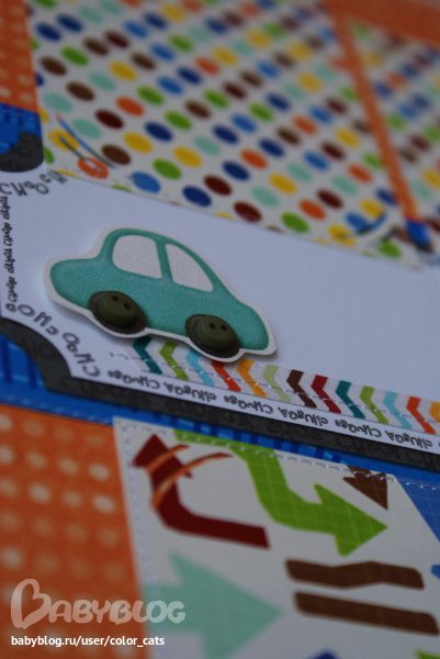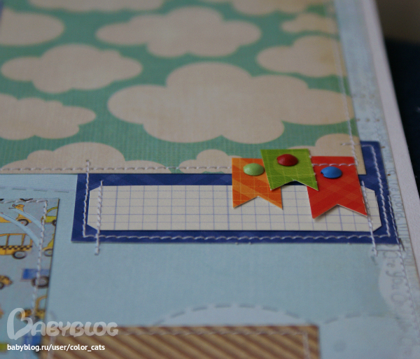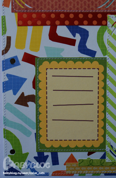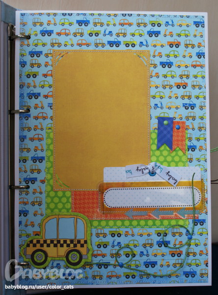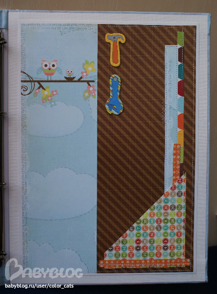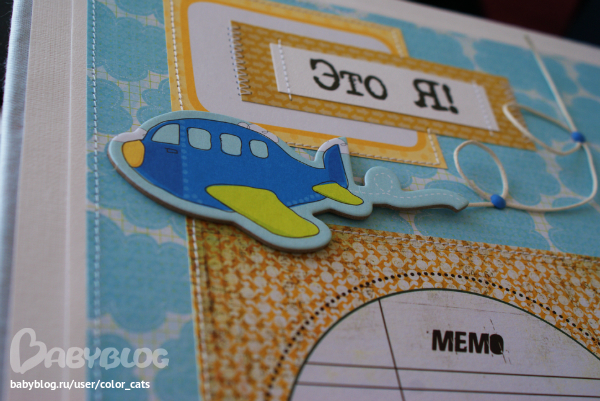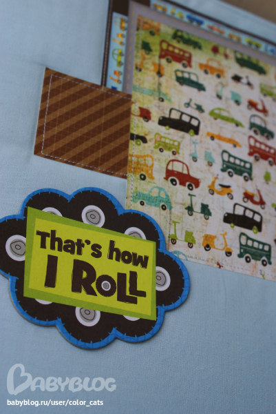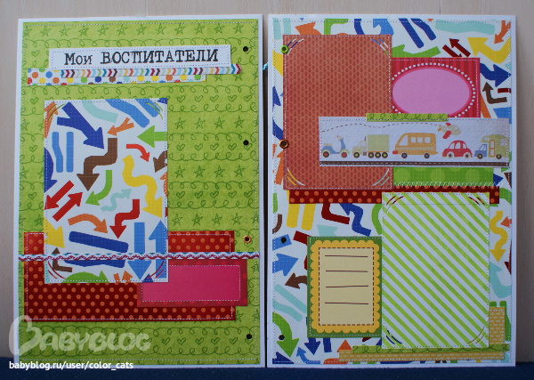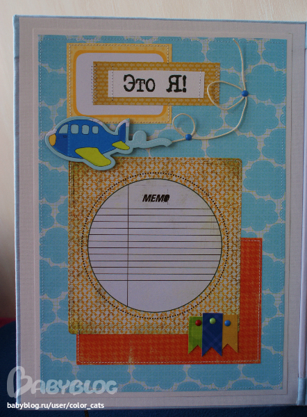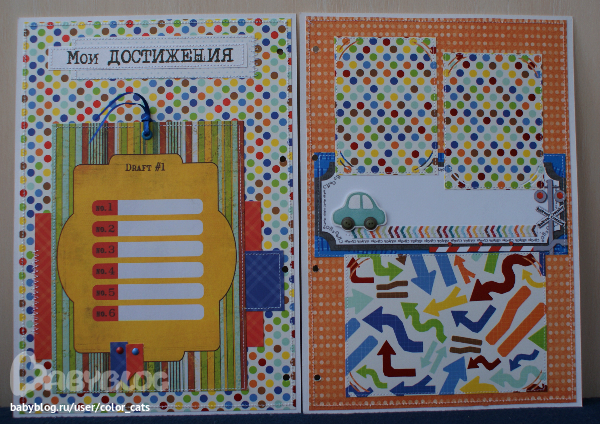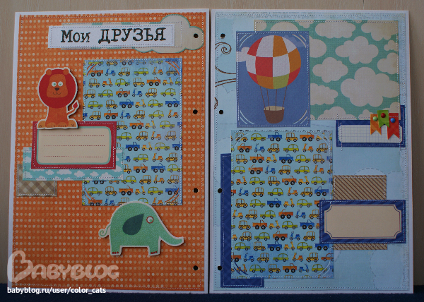 Одиннадцатый разворот "Мое творчество" (здесь я сделала 4 разных кармашка для рисунков, открыток, аппликаций и прочего творчества Илюши):