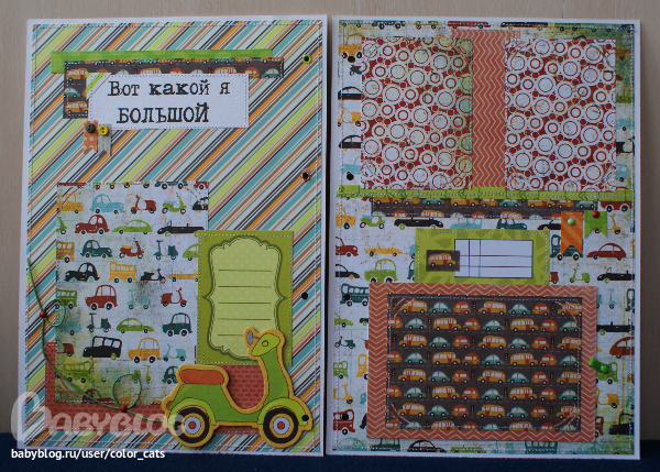 СкрапбукингВот такой альбом-портфолио в детский сад получился у меня для нашей бб-шки Ольги, а точнее для ее Илюши. Формат А4, 11 разворотов. Оля сказала мне название разделов и количество фото для каждого, а в оформлении дала мне полную свободу)))) Оленька, надеюсь, вам с Илюшей понравится)))