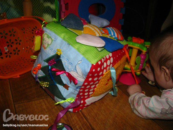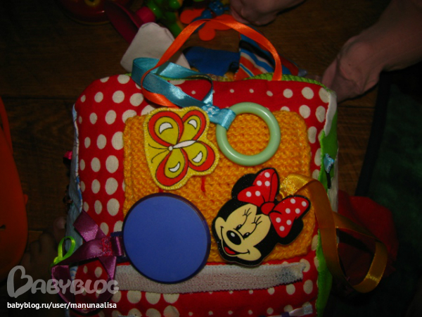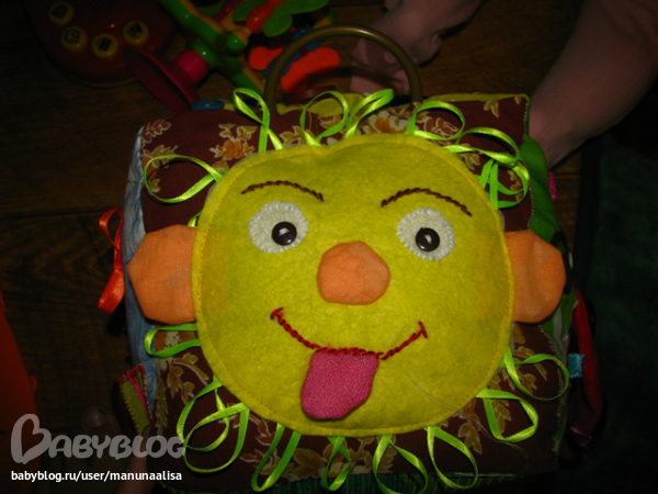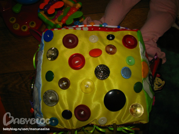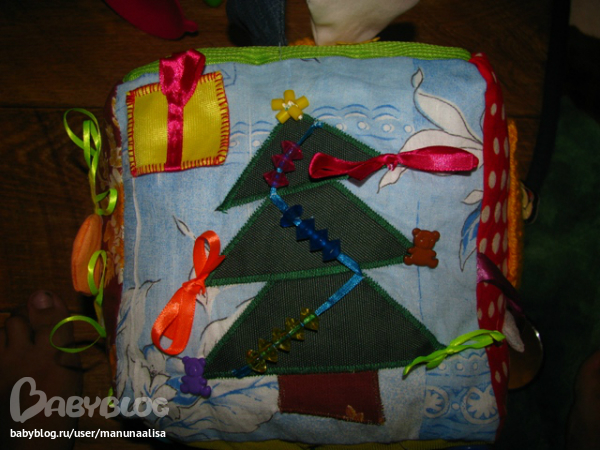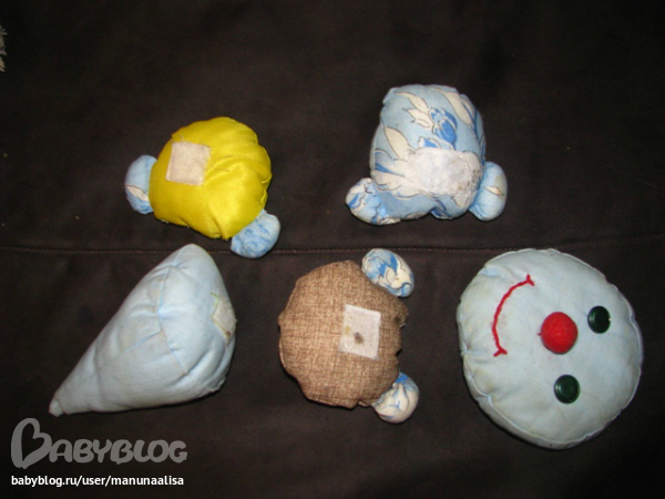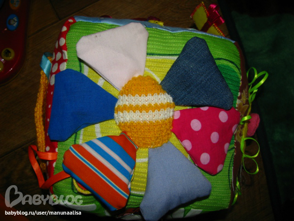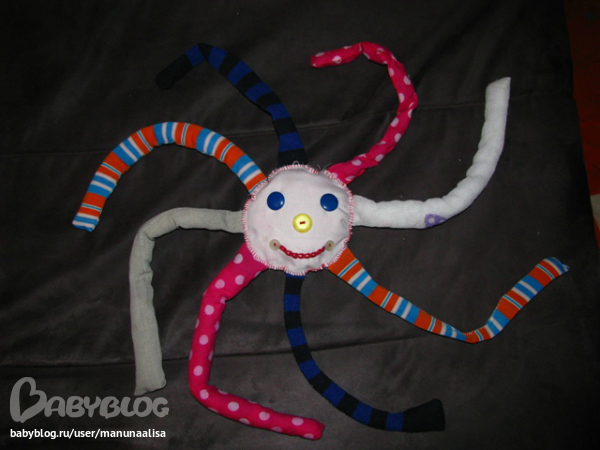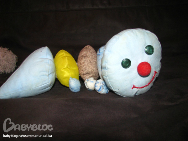 Гусеница просто набиа синтепоном:))хотя сейчас бы делала уже по-другому: разный наполнитель, шуршание. А вот осьминог именно такой: каждая лапа разная: мягкая, шершавая, шуршащая, гремящая, в одной ноге 10 штук орехов лесных ( перебирать пальчиками и двигать можно) Ну вот примерно так