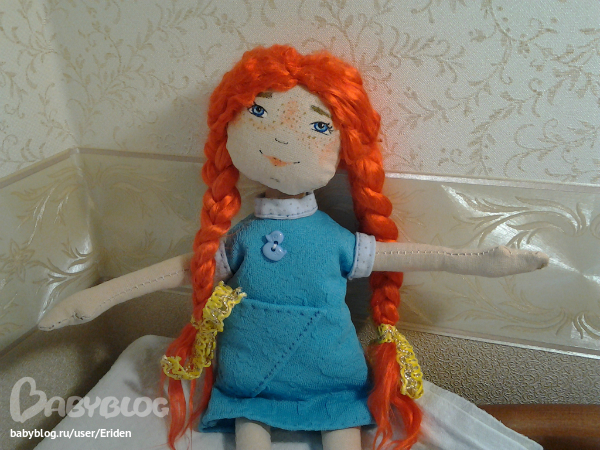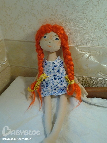 И обещанная смешная куколка. Не поверите, но по выкройке Снежной Девочки. Получилась Весена. Я не удержалась... стоит сама, но оттопырив попу. ))