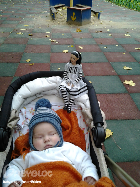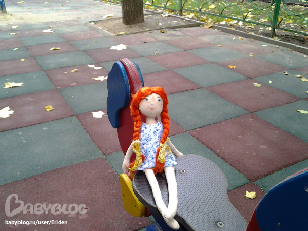Это мы пошли погулять и покачаться на качельках. В новом сарафане.