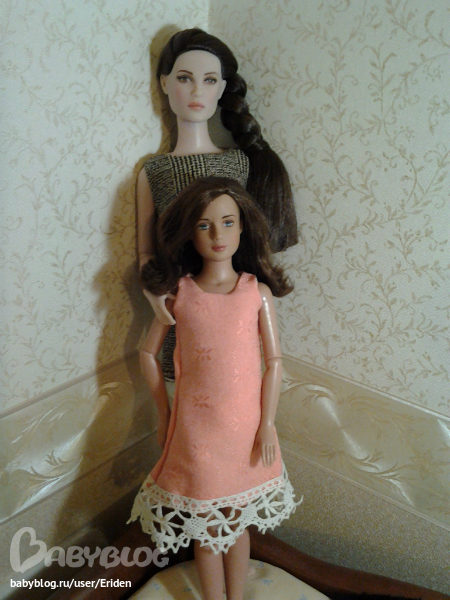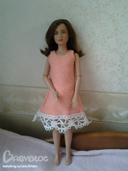 Это наше персое платье. Все не решу, кого бы в карман сунуть. Платье полностью сшито вручную, что заметно ((( Но ей, как ни странно, идет...