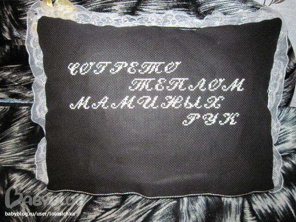 2)Вышивала по набору, который мне подарила Плюшка-Танюшка!!! Оформила подушкой и подарила сыну.