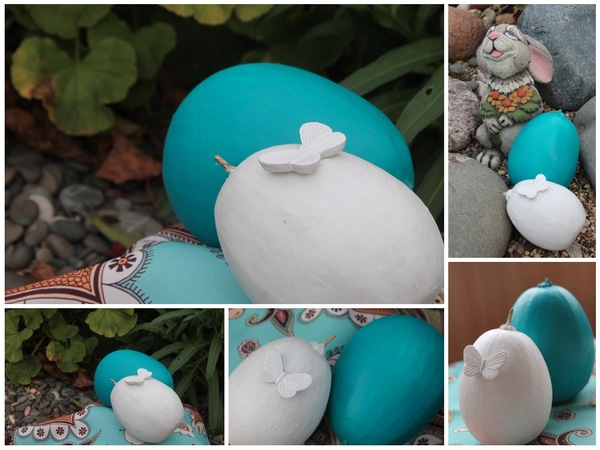 Декор, витражи.В этом году я решила побаловаться декоративными тыквами. Пакетик с семенами гласил "ассорти", но большинсво тыковок выросли безликими (по цвету стандартного кабачка). Согласитесь... это не очень интересно, но я решила их украсить))) Просто, быстро и... по-моему, красиво... В работе использовался акрил и акриловый матовый лак. На белой малютке (H = 8cm) гипсовая бабочка из набора для скрапбукинга.