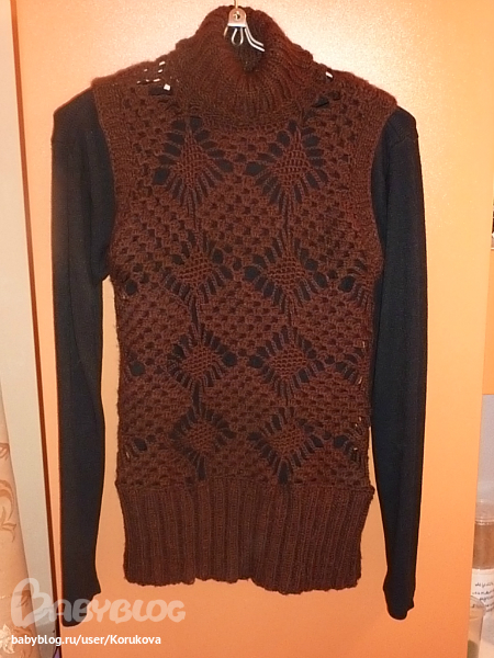 Я давно посматриваю на такой жилет - все мечтаю себе связать. Я бы носила с бежевым, белым, черным. Жилет классный