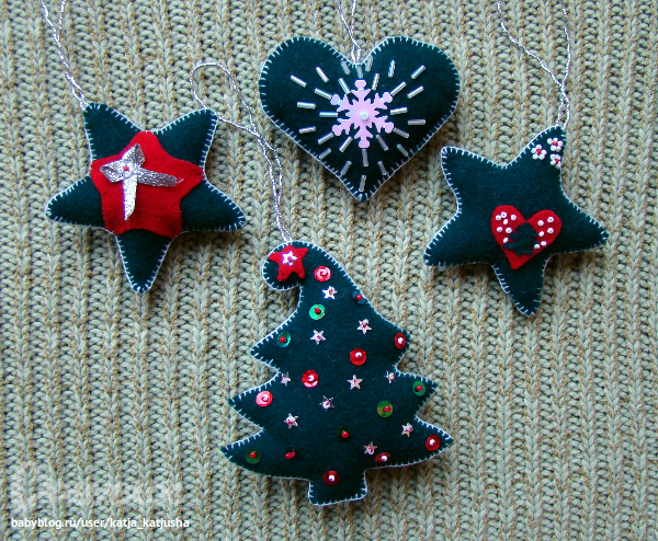ФетрНовогодние ёлочные игрушки из фетра своими руками)))