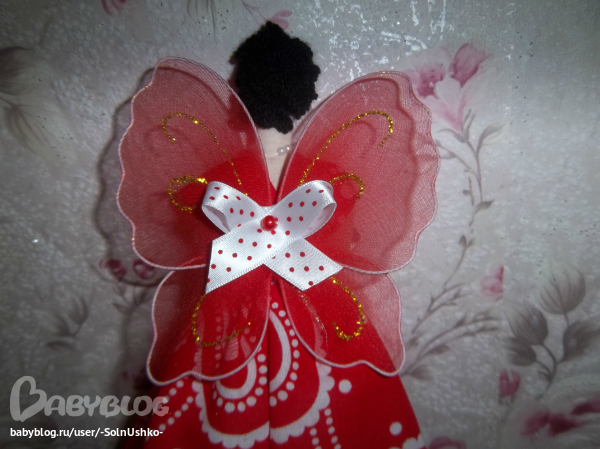 Спасибо большое!Крылышки у ангелочка-это бабочки ,которые в шторных магазинах как декор продаются,я там просто тело бабочки отрезала))))они нежнее смотрятся!