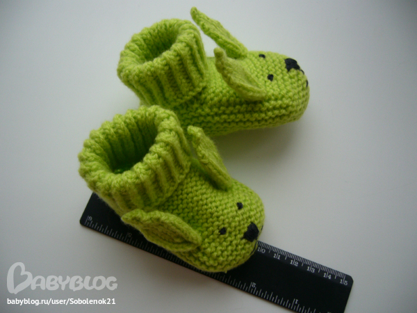 Пинетки-зайцы салатовые (в 1 ниточку) 9-10 см по стопе, 200 руб.