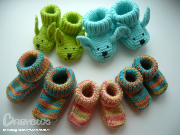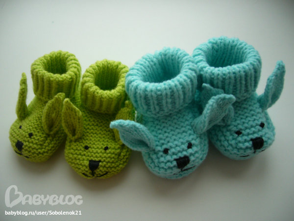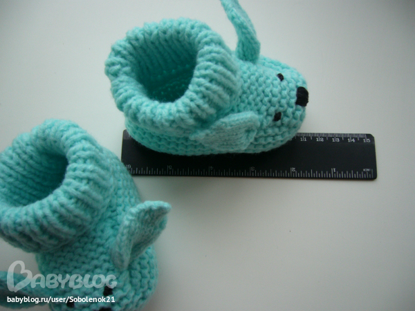 Пинетки-зайцы голубые (в 2 ниточки), 11 см по стопе, 250 руб.