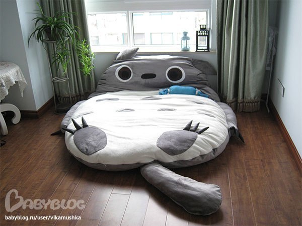 Ух, ты! Какая классная кровать! Это самый большой Тоторо, которого я видела! )))