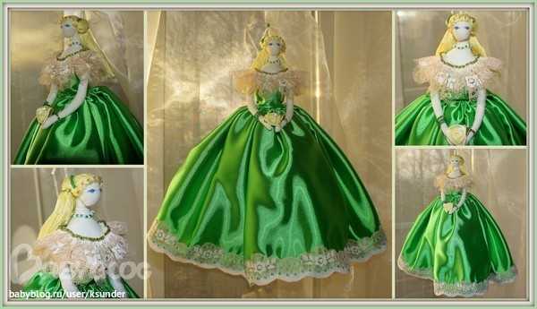 Ксюш, виден твой "почерк"! очень красиво! и зеленый смотрится благородно, элегантно...первая куколка почему Нататью Гончарову напомнила(жену Пушкина) - не знаю почему)))) а рыжеволосая, как сказочная принцесса, кажется, вот-вот закружится в вихре вальса......мне ооооочень понравились!!!!