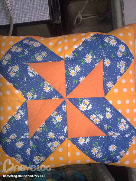 У нас недалеко от дома каждый год бывает белорусская ярмарка. Обычно я на ней колбасу и сало вкусные покупаю, а в этом году такой ситчик прикупила - не нарадуюсь,нужно было больше купить, а то всего метр. На этой подушечке - голубой.