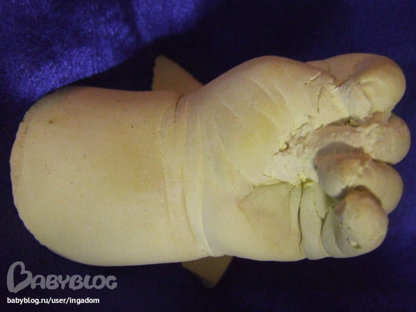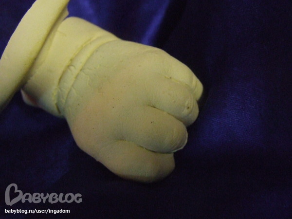 фото не очень получились - по факту каждая жилочка видна - было это в 3 месяца - измучилась - не давал руки-ноги - вертеться начинал сразу - все выдергивал - с отпечатками чуть проще получается - форму проще сделать