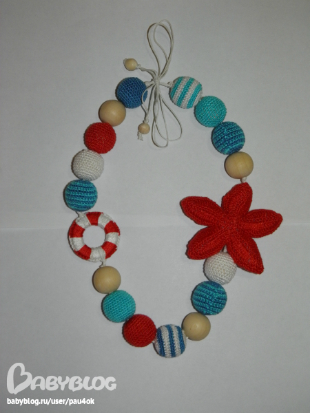 Еще в мае для выставки в Питере я связала бусы в морском стиле