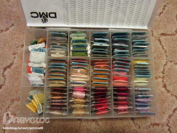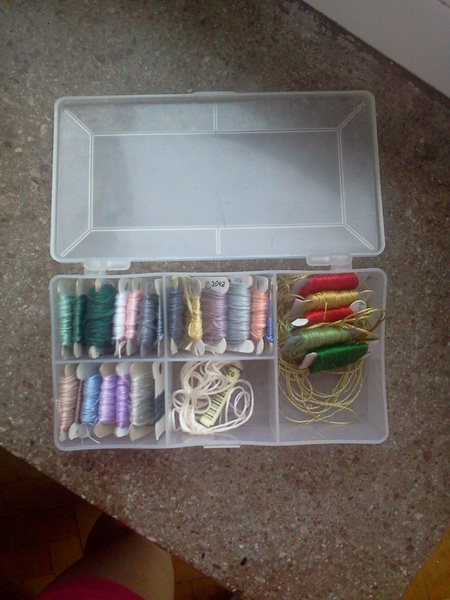 а когда вышиваю, те бобинки с мулине которые использую складываю в пластиковых конверты, стоят они 15 руб, а позволяют ничего не раскидывать